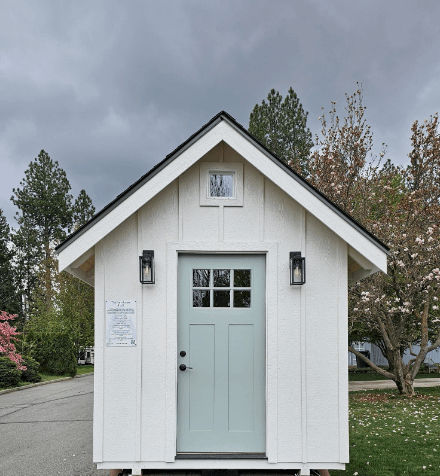 Displayed at Gibson’s Nursery, 1401 S. Pines Rd. Spokane Valley, WA 99206. Experience the versatility and charm of “The Farmhouse” shed for yourself. Give us a call, and we will meet you and show you inside.